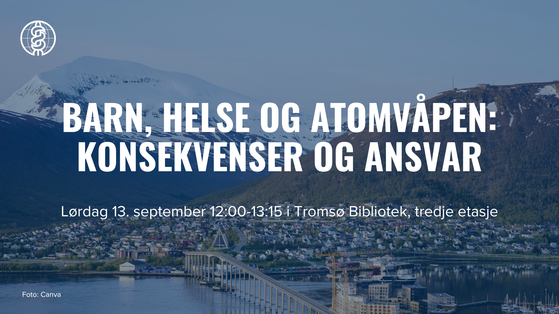 Norske leger mot atomvåpen, Fredsuka i Tromsø og ICAN Norge inviterer til faglig seminar hvor vi legger frem rapporten “Atomvåpens konsekvenser for barn”, med påfølgende panelsamtale om hvilke innvirkninger det bør ha for vår helsepolitikk.