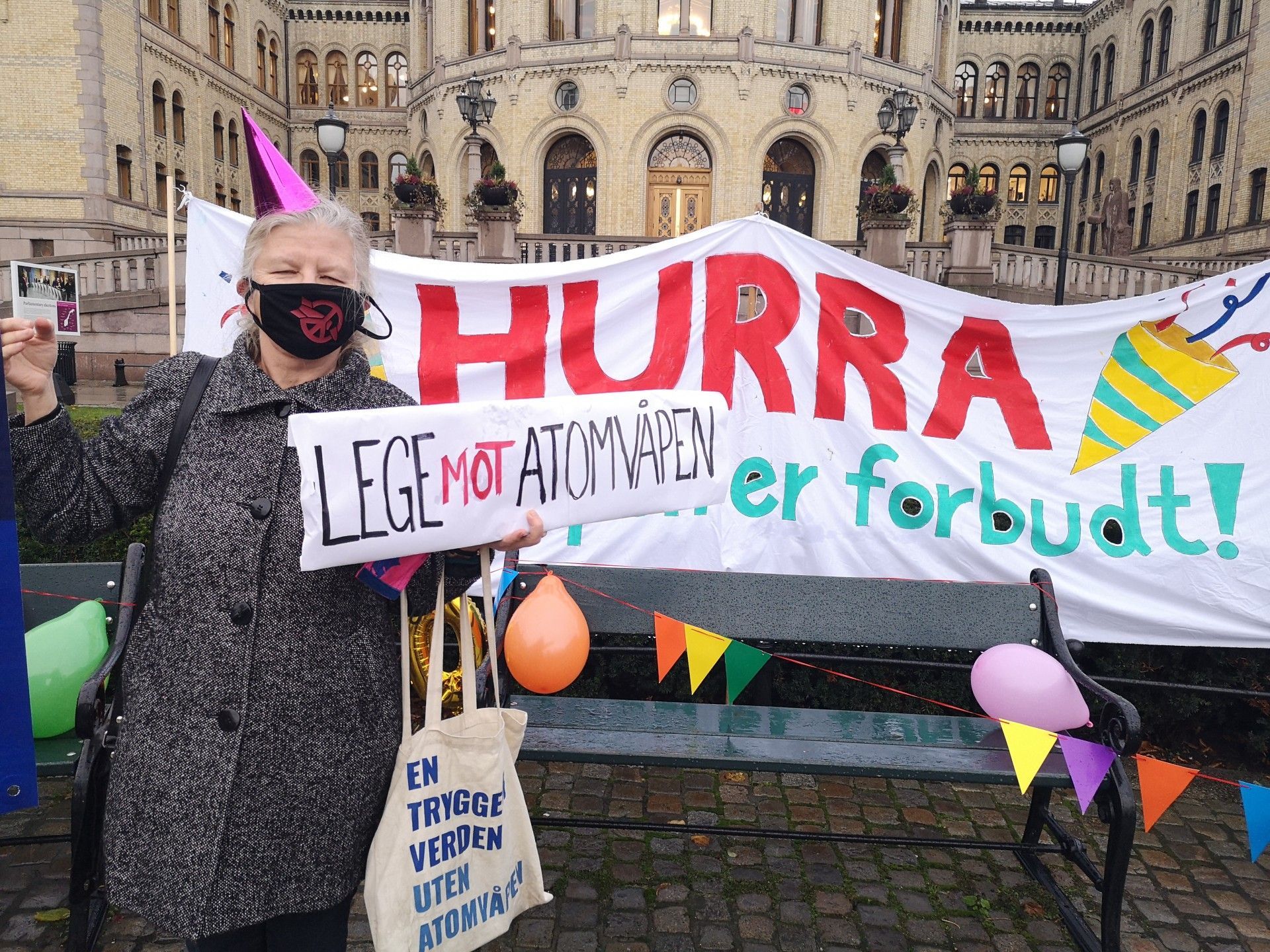 Norske leger mot atomvåpen var en av mange ICAN-partnere som markerte foran Stortinget på mandag.