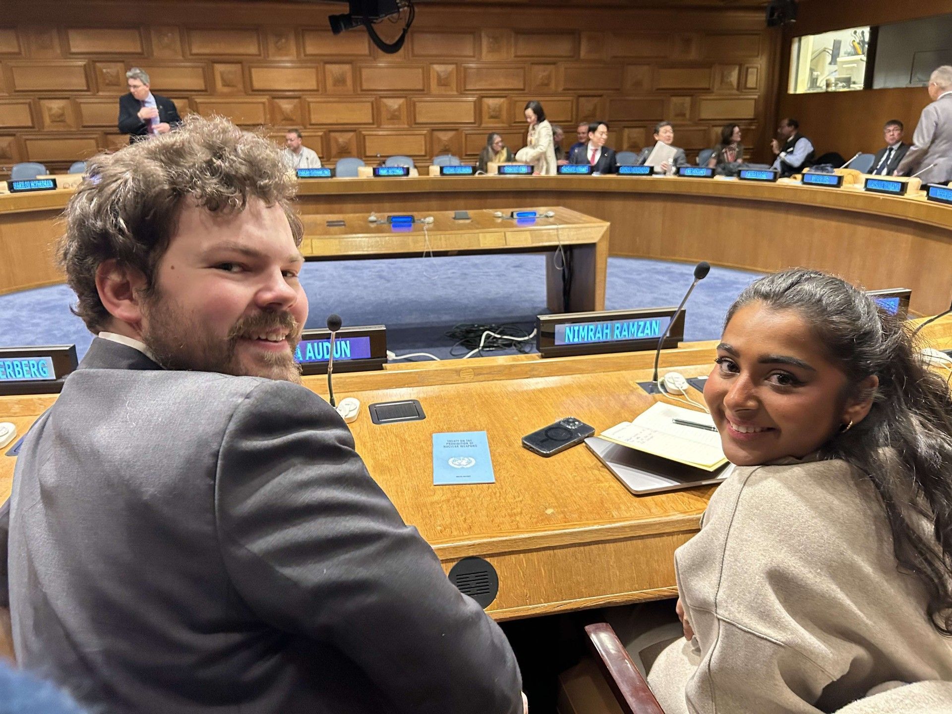 Bilde: Audun Hammer Hovda (SU) og Nimrah Ramzan (AUF) deltok på møte med parlamentarikere under statspartsmøtet til FNs atomvåpenforbud.
