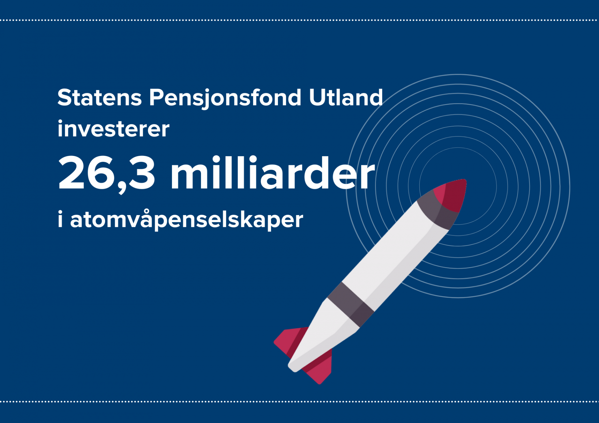 SPU har investert 25,9 milliarder NOK i syv selskaper som produserer varer eller tjenester som spesifikt bidrar til utvikling, testing, produksjon, besittelse, lagring eller bruk av atomvåpen. Det avslører den nye rapporten Risky Returns, Nuclear weapon producers and their financiers , av The international campaign to abolish nuclear weapons (ICAN) og den nederlandske organisasjonen PAX.